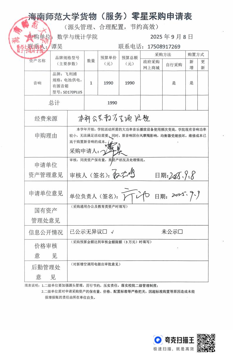 海南师范大学数学与统计学院购置以下资产,根据学校相关规定,对购置物品明细进行公示如下:
